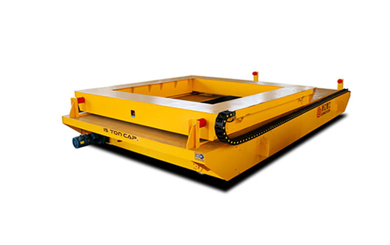 臺(tái)面為Q235鋼板臺(tái)面,車架兩側(cè)設(shè)有四個(gè)吊孔或吊鉤供吊裝和翻身用。車架強(qiáng)度按額定載重的